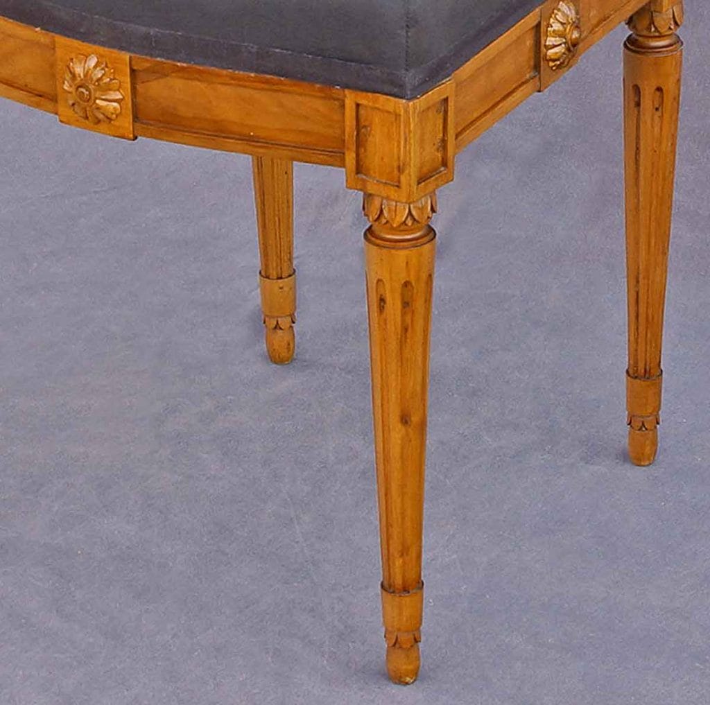 Im Gegensatz zu den geschwungenen „Cabriole“-Beinen des Rokoko sind die Beine dieser Stühle streng gerade und verjüngen sich nach unten. Die gesamte Konstruktion folgt einer klaren geometrischen Logik und vollkommener Symmetrie. Dies entsprach dem damaligen Zeitgeist, der Ordnung und Vernunft betonte.