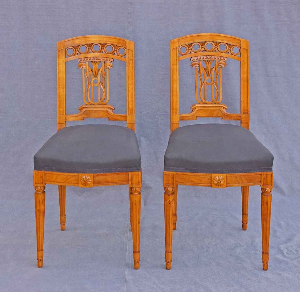 Louis-seize-Stühle mit klassizistisches Repertoire an Ornamenten